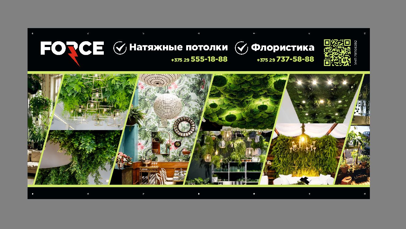 "FORCE". Монтаж натяжных потолков. Полотна от компании Ferico. Натяжные потолки любых форм и любой сложности, монтаж зелёных зон (флористика) на потолке в коробках с подсветкой.Используем качественные материалы. Доступные цены. При монтаже применяется пылесос. Гарантия на полотно 20 лет. Слив воды при затоплении или замена полотна. Реализация комплектующих для натяжных потолков.